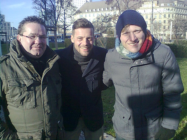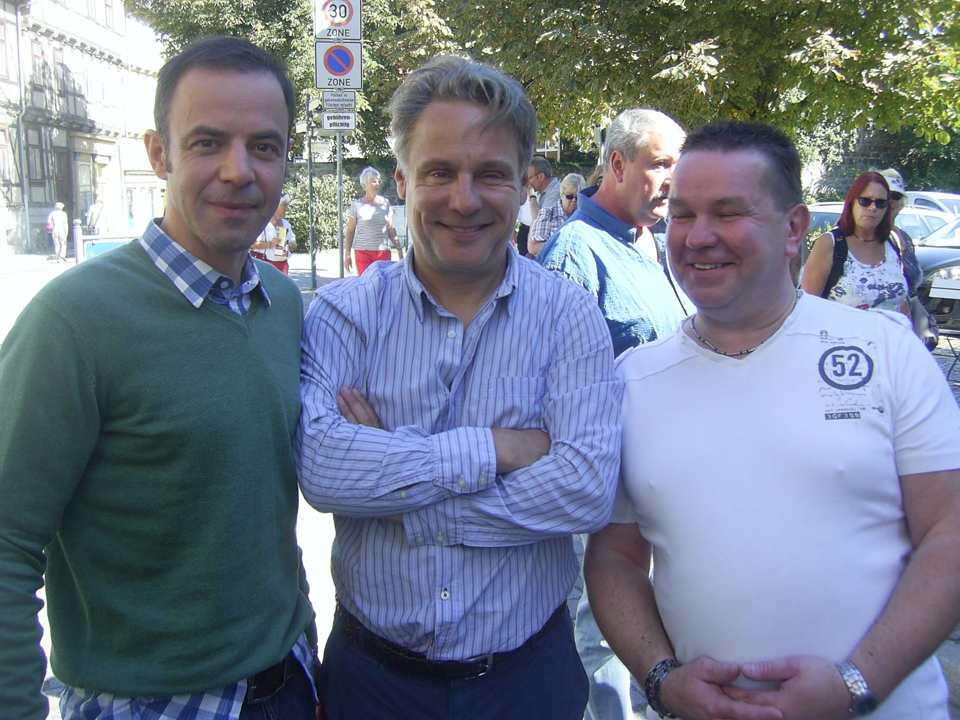 "Heiter bis tödlich-Alles Klara". In der Mitte des Fotos, Riegie-Thomas Freundner, lings Felix Eitner und meine Wenigkeit, wir wahren in Quedlinburg.