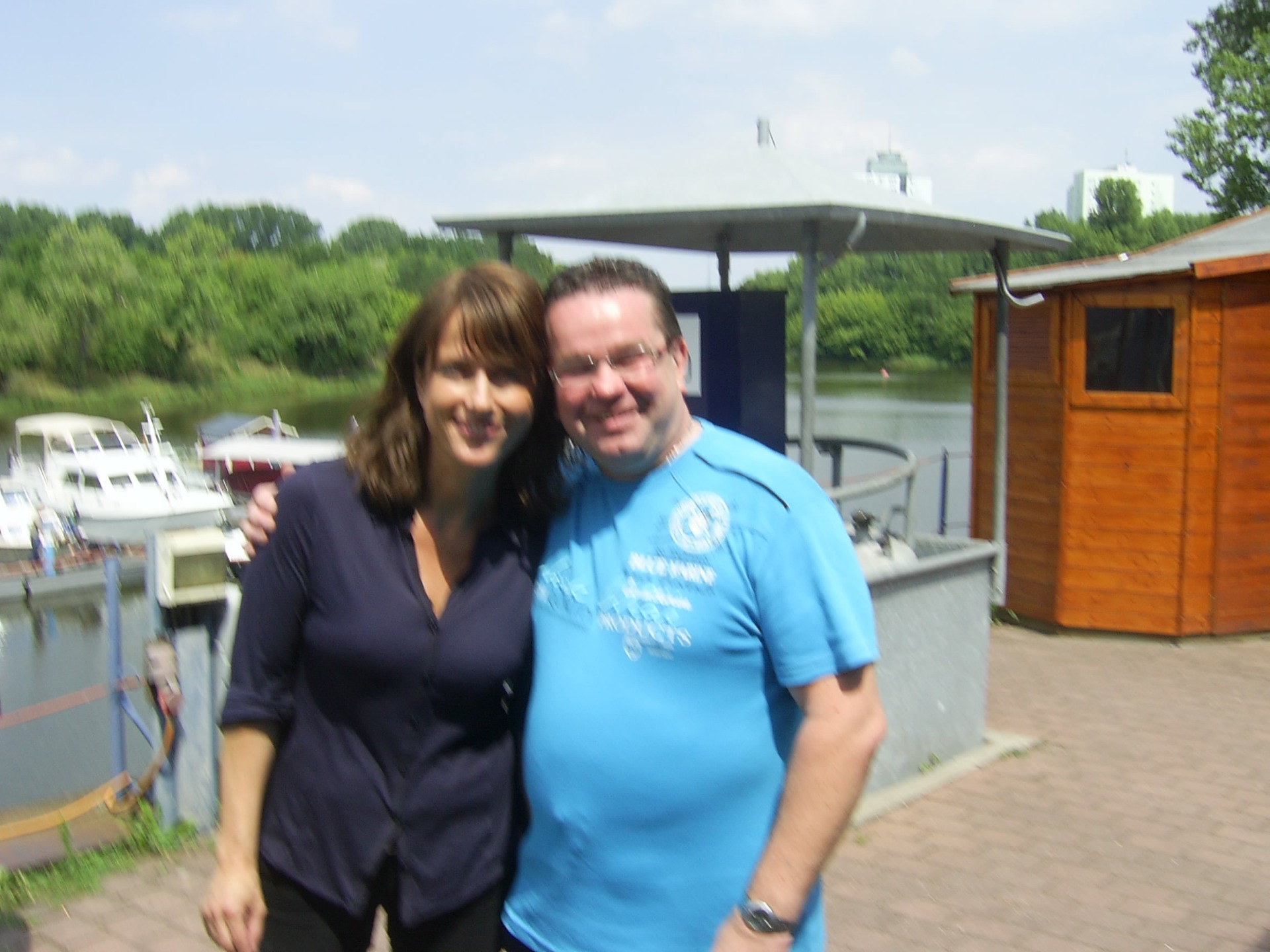 "Polizeiruf 110" in Magdeburg. Auf diesem Foto bin ich mit der Hauptdarstellerin Claudia Michelsen, Filmname"Doreen Braschner" zu sehen. Meine Komparsenrolle"Bootsbesitzer"