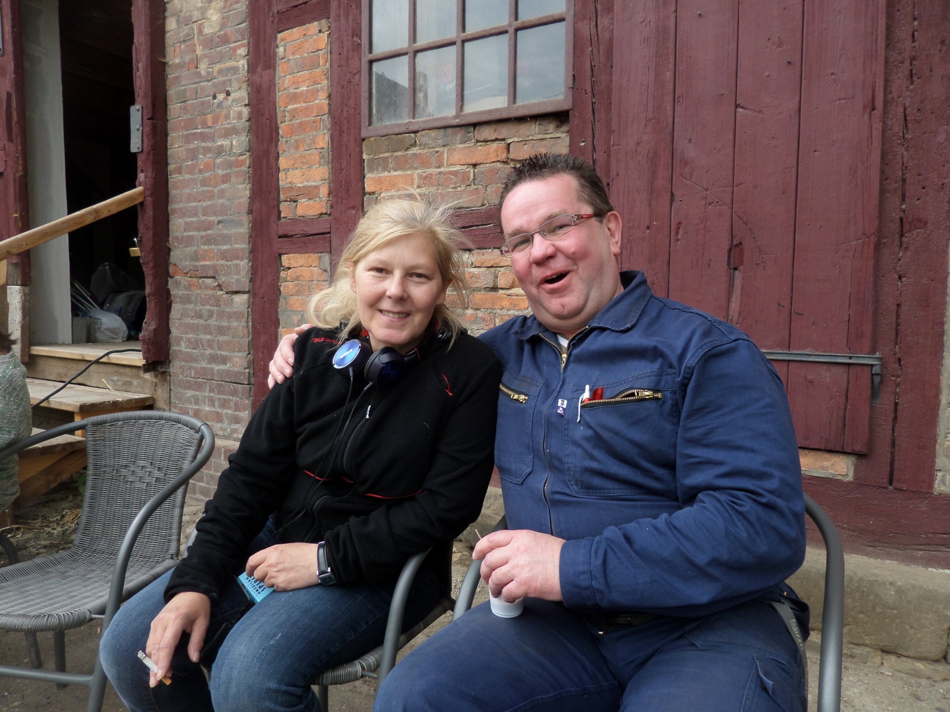 Eines meiner Lieblingsbilder ist diese Aufnahme. Ich durfte mich während eines Pausengesprächs mit der Regieassistentin und Script Continuity Heidi Haensch, "Heiter bis tödlich-Alles Klara",fotografieren lassen. Sie ist einfach eine wunderbare, fröhliche "Cheffin".Ich war hier als Komparse"Glashüttenmitarbeiter"dabei.
